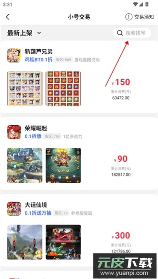 三、页面展示大量可交易账号,可通过右上角搜索功能快速查找目标;