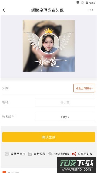 6、进入生成器界面,上传个人头像、输入昵称并选择签名颜色,最后点击确认生成即可。