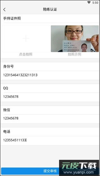 3、在申请栏目中如实填写证件信息、联系方式并上传手持证件照片,最后提交审核即可。