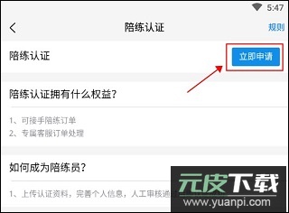 2、进入认证页面仔细阅读相关规则,随后点击“立即申请”按钮;
