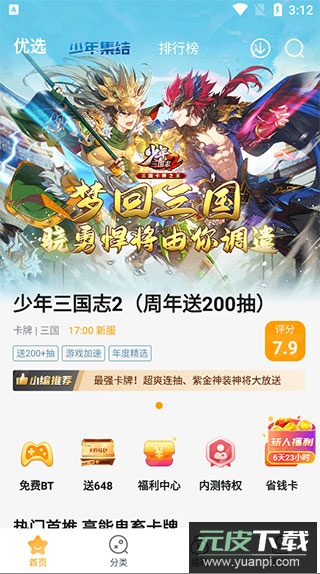 2、首页设有热门推荐、青少年专区及游戏排行等不同板块;