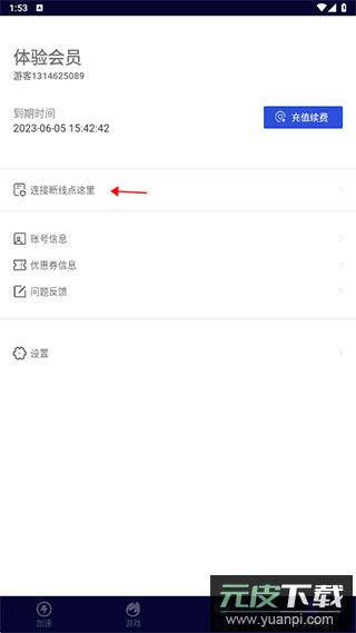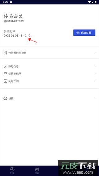 5. 进入个人中心查看,新用户登录后可获得两小时的会员试用时长;