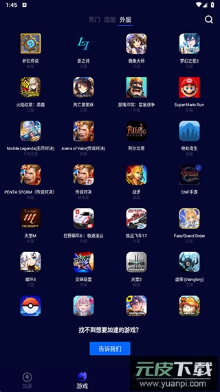 4. 在游戏板块内,可以自由选取国内外各类游戏进行加速体验;