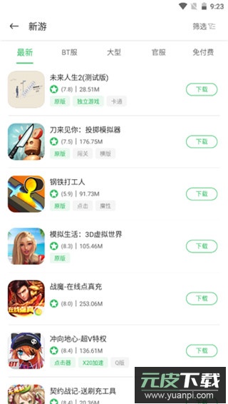 2、选择进入一个分类模块,例如新游专区,从中挑选喜欢的游戏进行尝试;