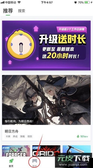 1、启动软件后,点击界面下方的游戏专区入口;