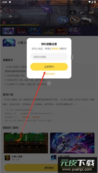 3、输入手机号码,点击立即预约,游戏上线前你会收到短信提醒。