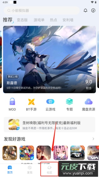 1、启动魔玩助手游戏盒,进入“社区”板块参与玩家互动;