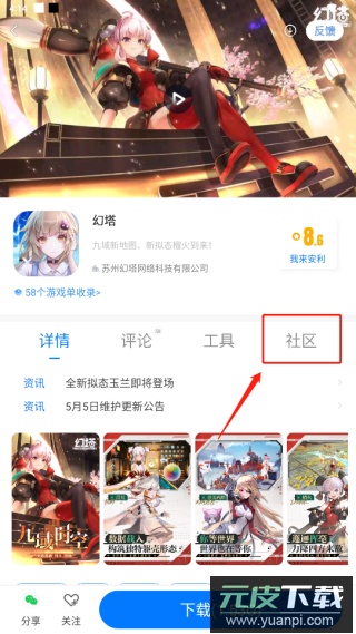 5、进入游戏详情页后,点击社区按钮;