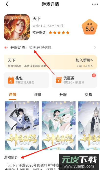 2、每款游戏不仅提供详细介绍,还包含开服动态等参考信息;