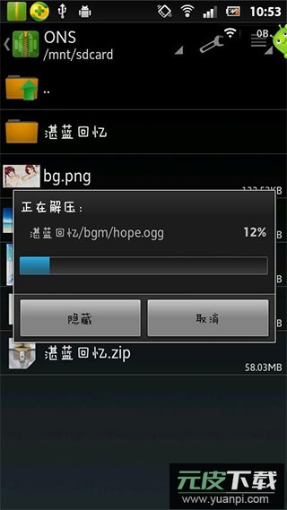 3、将下载的游戏压缩包解压到该目录,等待解压过程全部结束。