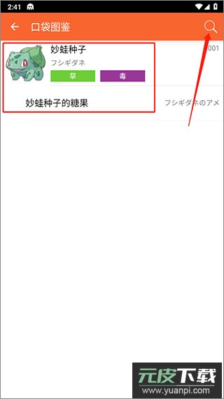 2、通过搜索栏进行快速查找;例如输入“妙蛙种子”,便能获取相关情报。
