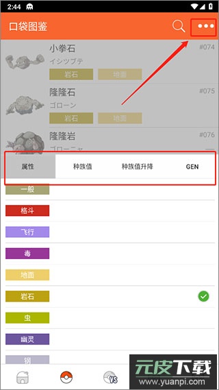 用户还能点击右上角菜单,按属性、种族值等条件筛选精灵。
