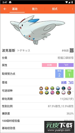 1、每只宝可梦均配有完整资料,包含特性、属性及编号等;
