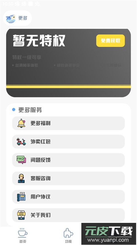 2、进入更多功能页面,点击获取免费功能选项。