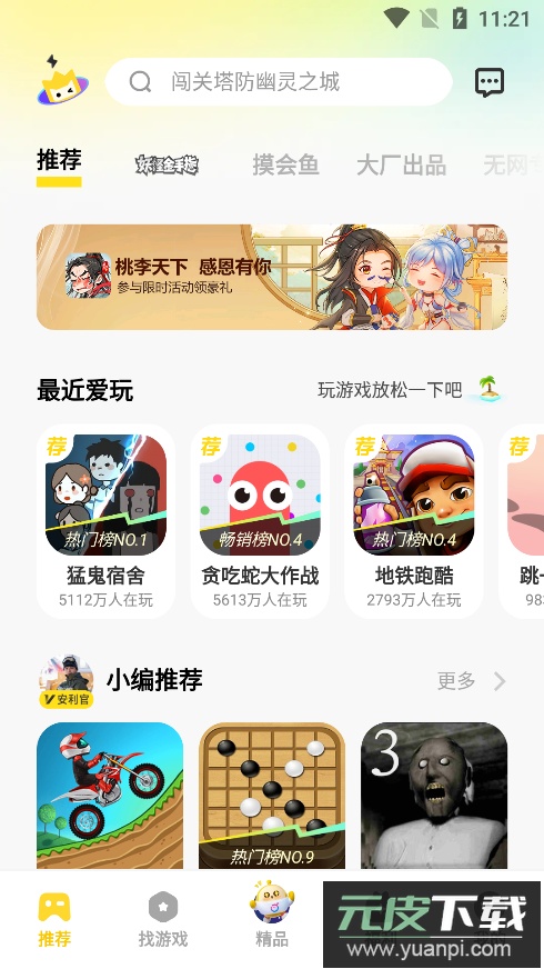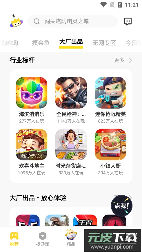 1、打开软件,在推荐页面可以看到各式各样的游戏。