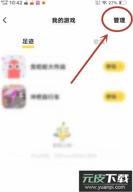 3、进入我的足迹页面后,点击右上角的“管理”图标;