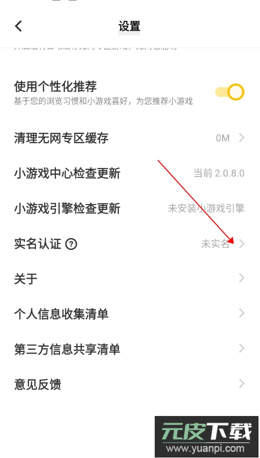 2、在设置页面中向下滑动,找到并点击“实名认证”选项。