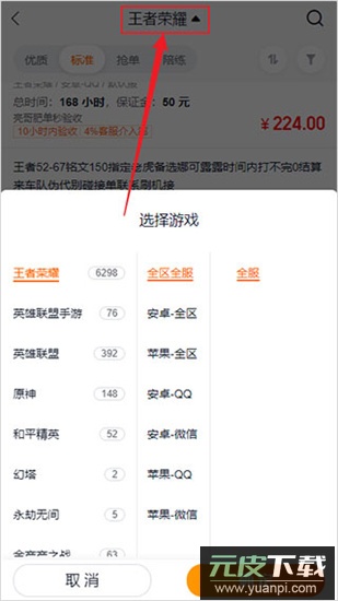 2、在页面顶部选择想要代练的游戏类型;