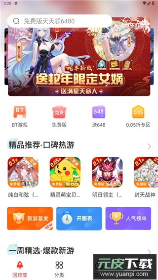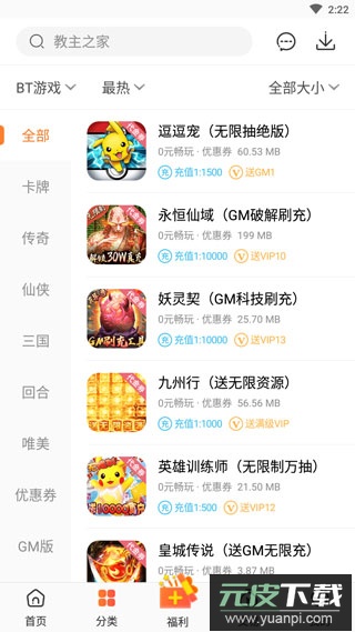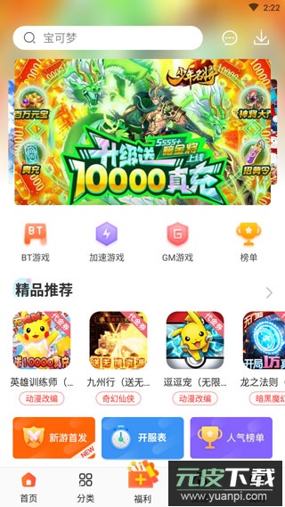 1、启动已安装的软件,首页会展示众多福利游戏资源。