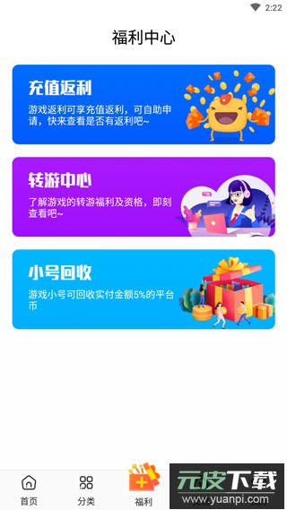 3、福利专区提供充值返利、转游支持与小号回收等多项服务。